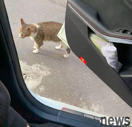 With the car door open Not long after, a bold cat came running out Not afraid of strangers at all {1 4} Get in the car directly Meow: Well, Mercedes-Benz, I think it’s okay Just follow him...