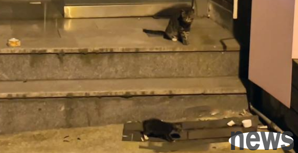 A tabby cat stood on the steps. Whenever someone passed by, it would make a meowing sound, and its eyes kept looking down the steps, full of anxiety and confusion, as if it was asking for help. Following the cat's eyes, he suddenly found a little milk cat lying on the ground. It was obvious that this tabby cat was the kitten's mother.