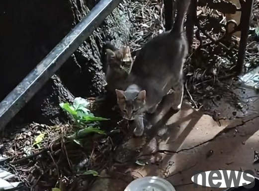 The shit shovel officer took a closer look and saw that this was not the stray little female cat that Meow Ke often likes to mess with!