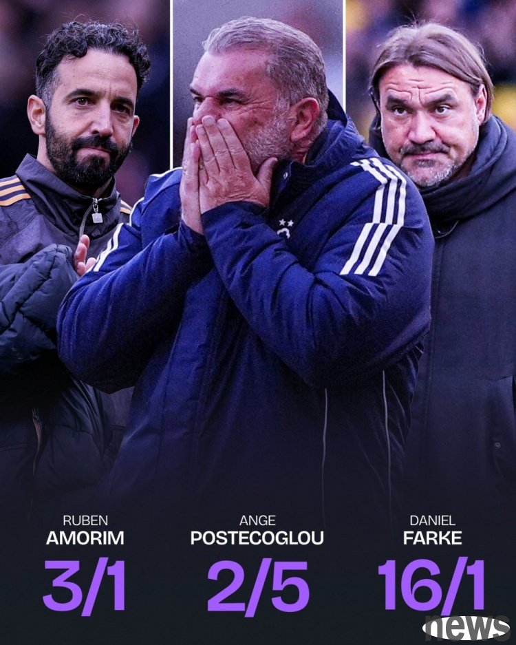 Squawka listed the odds of becoming the next Premier League coach to be sacked, with Postkoglu ranking first and Amorim second.